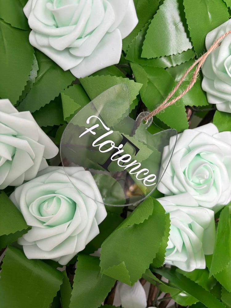 Simply add to your basket and leave me a note at the checkout with what you'd like your ornament to say. You can let me know your preffered font and colour in the notes too. The more specific the better!